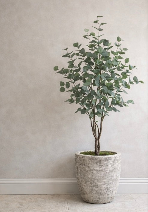With silvery grey-green eucalyptus leaves, a textured real-feel trunk and sculptable branches, this 140 cm faux eucalyptus tree brings height and calm without overwhelming the room.