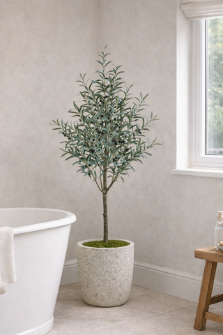 Timeless faux olive trees, designed to bring calm Mediterranean character to your home.